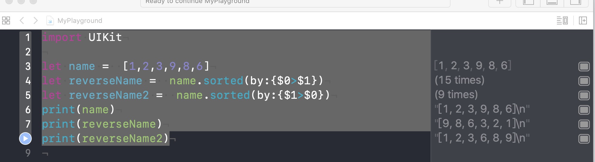 let reverseName2 = name.sorted(by:{$1>$0})