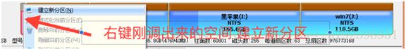 设置好点击开始,等待完成,右键刚才跳出的空间,建立新分区