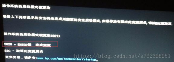 4. 电脑重启后会出现如下图所示界面,他要求你输入四个数字并按下“Enter键”完成变更,这四个数字是随机的,通过键盘输入数字和Enter。
