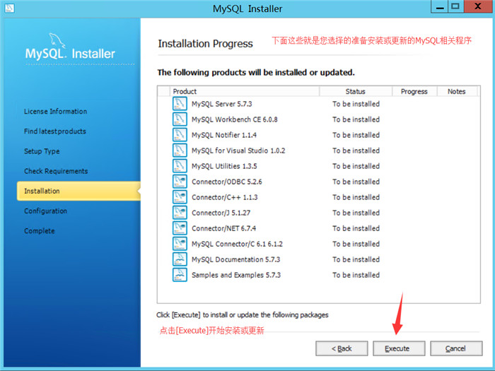 这时,安装程序会显示所有准备安装的MySQL相关应用。