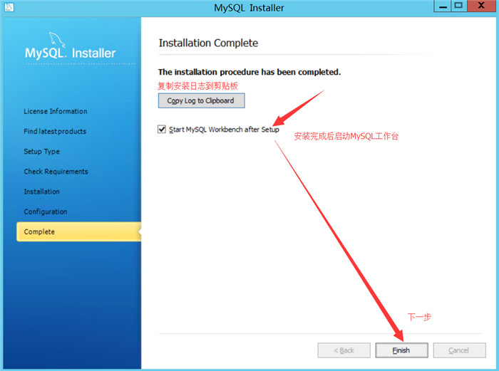 在这里,你可以勾选“Start MySQL Workbench after Steup”(结束安装后启动MySQL工作台)。