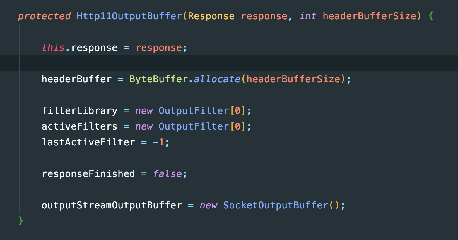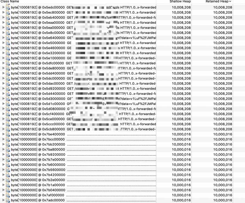 这也就是为什么之前看到大量的buffer是10008192字节的。至于为什么分配的buffer需要是MaxHttpHeaderSize+ReadBuffer。显然还有一批内容是空的10000000字节的buffer应该是output buffer,源码可以印证这点: