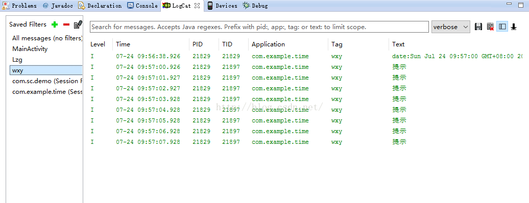 运行打开开关,下边的时间选择会显示,当前时间09:56,选择09:57后,会发现马上弹出选择的时间日志数据,过一会到了09:57后,会发现每一秒都调用打印日志信息的方法,点击关闭开关,停止打印。