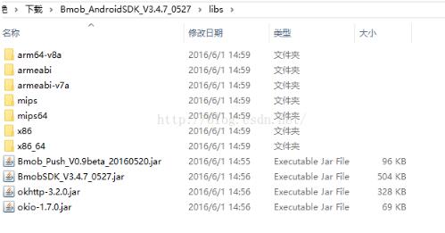 5.注意之前讲过使用Bmob需要下载第三方SDK,将libs文件夹中的所有内容都复制到项目libs目录下,然后Properties->Java Build Path->Libraries->Add JARs...添加刚复制的四个jar包