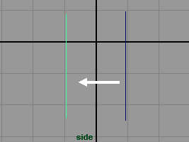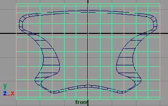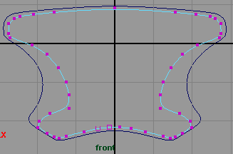 在侧视图复制曲线,并在 z 轴方向上移动约为 0.951(fig 3), 然后将新复制的曲线移动各 cv 点使其形状像 (fig 4) 所示,可以看出它比原来的曲线轮廓要小。