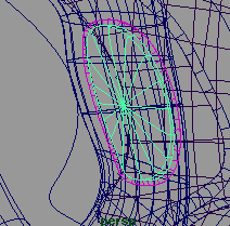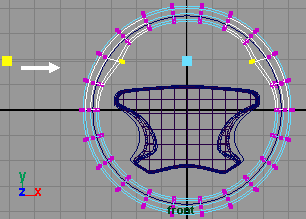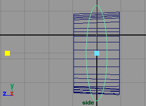 回到侧视窗,将圆柱体的 z 轴方向缩小到 0.216(fig 7). 接下来选择中间的一些 cv 点 (fig 8).
