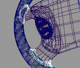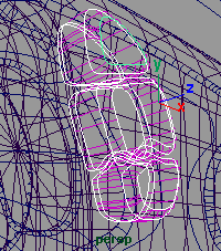 接下平,创建一个 nurbs 圆曲线, span 为 18, 并在 z 轴方向上旋转 -41.676 度,并将 z 轴方向缩小到 0.238, 在 x 轴方向上移动到 -2.484 , y 轴移动到 -2.736(fig 18). 接下来你需要复制一些曲线并旋转移动到 (fig 19) ,适当移动它们的一些 cv 点。