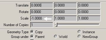 thenselectall the objects (not the main torus), then go to edit group . hit group... wait while maya is calculating group. when finished, go to edit duplicate option box , then apply these settings (fig 37), then you will have a mirrored object on the other side (fig 38).