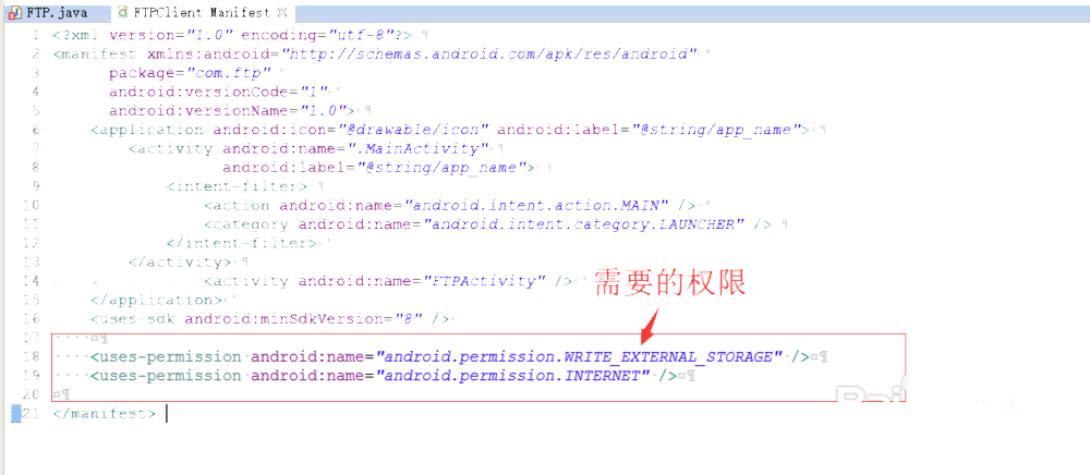 <uses-permission android:name="android.permission.WRITE_EXTERNAL_STORAGE" /> <uses-permission android:name="android.permission.INTERNET" />