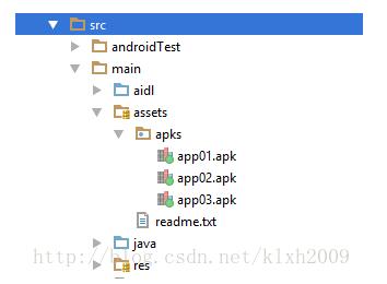 - String srcPath 传入assets文件夹下的某个文件夹名,如上述apks,可传入为空”“字符,则复制到SD后,默认将assets文件夹下所有文件复制;