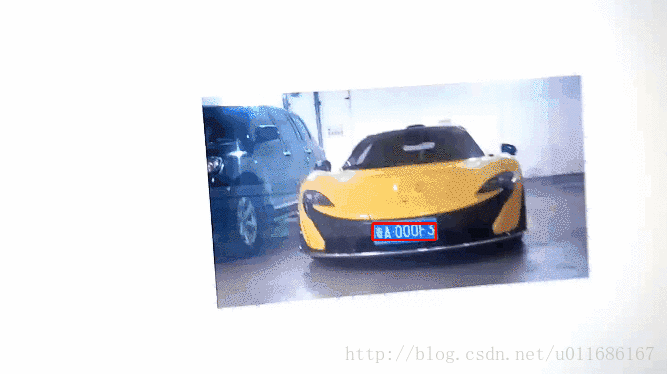 角度发生倾斜的车牌也是可以检测出来,但是在后期的车牌识别,需要进行倾斜校正。如果静态检测还不够意思,那么请看动态检测的效果(转换出来的gif有点模糊,各位莫怪):
