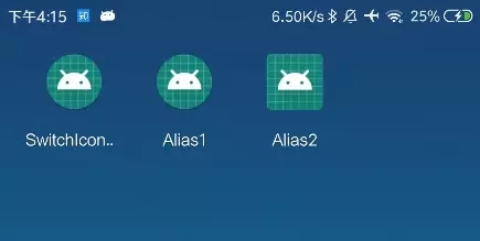 当然了,实际项目中我们只会显示一个图标,这里我们只需要把"别名1"和"别名2"的android:enabled="true"改为"false"就行了,这样就只显示一个图标了,就不放效果图了。