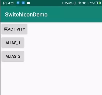 这里三个按钮点击后切换到相应的应用图标和名称,"原ACTIVITY"代表只显示MainActivity这个原来的启动入口,"ALIAS_1"代表别名1,以此类推。