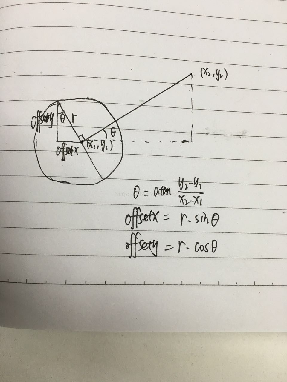float offsetY = (float) (mRadius * Math.cos(Math.atan((mY2 - mY1) / (mX2 - mX1))));