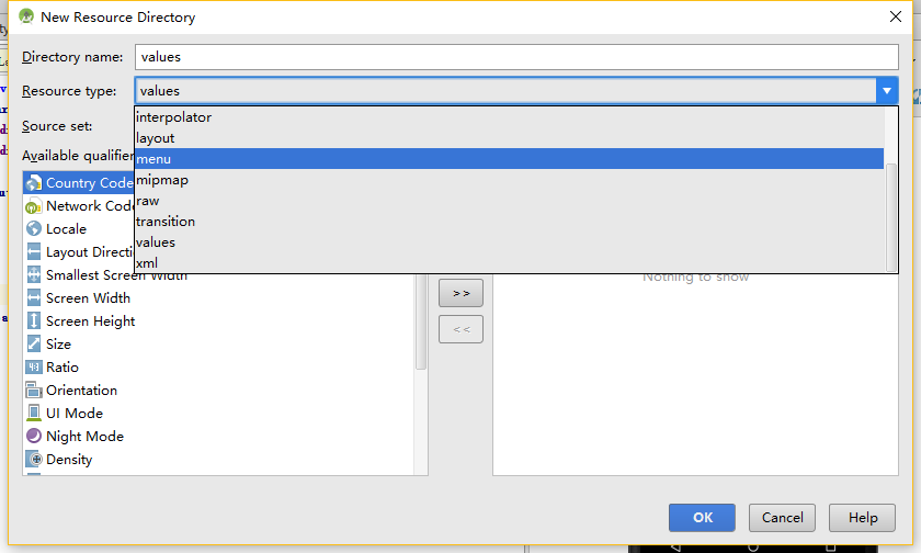 2.点击之后,出现下图Resource type选择menu,名字随便起,点击ok