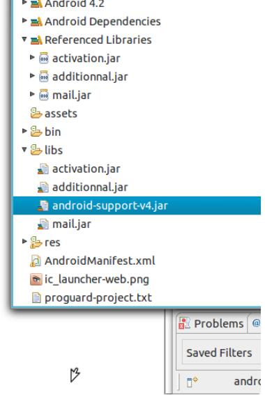 将activation.jar,additionnal.jar,mail.jar放到项目的libs 文件夹。然后在项目中选中这三个包,右击->Build Path->Add to buildPath.