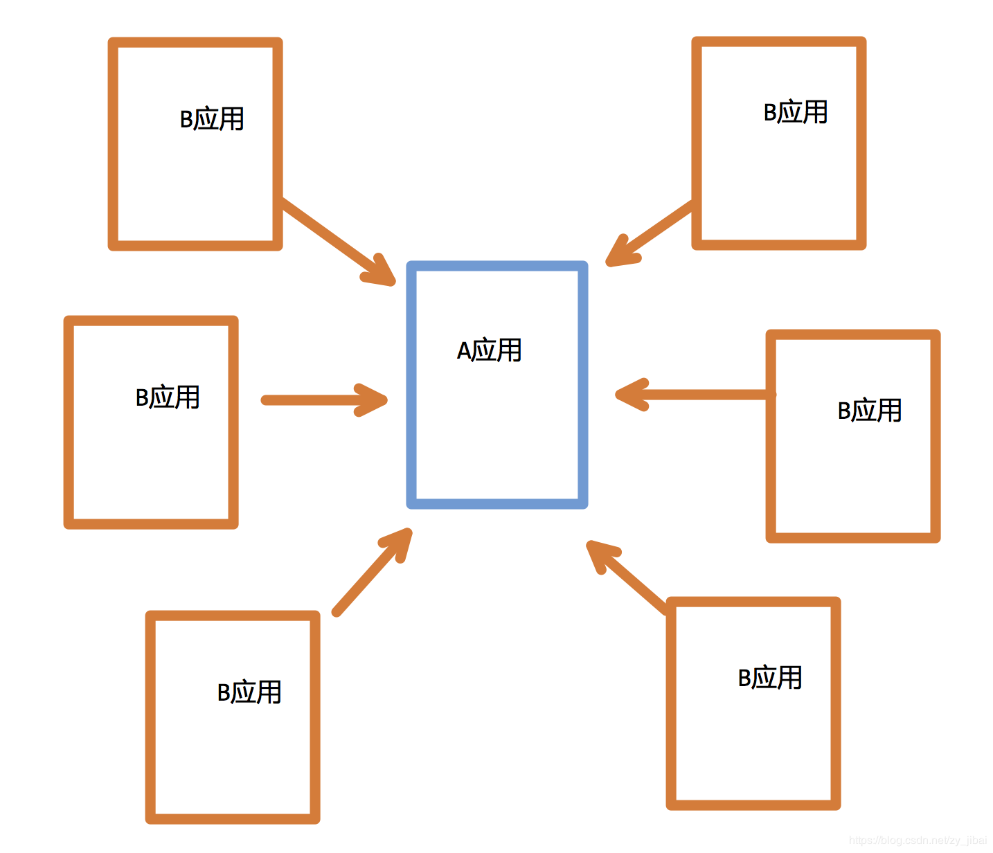 A和B应用其实是1对多的关系,不同的B应用需要从他们自己的地方获取到资源给A。