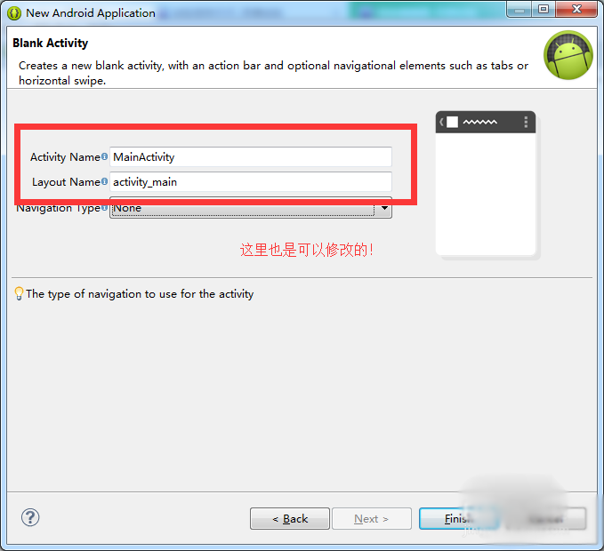 6、设置完这些之后,点击【next】,之后的都不需要进行修改,直接点击4~5个【Next】,到达输入【Activity】名字的界面;在这里我们如果不是做项目,只是初学,也可以选择默认值,对其不进行修改;小编只想告诉大家这里是可以修改的!