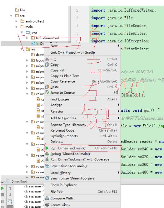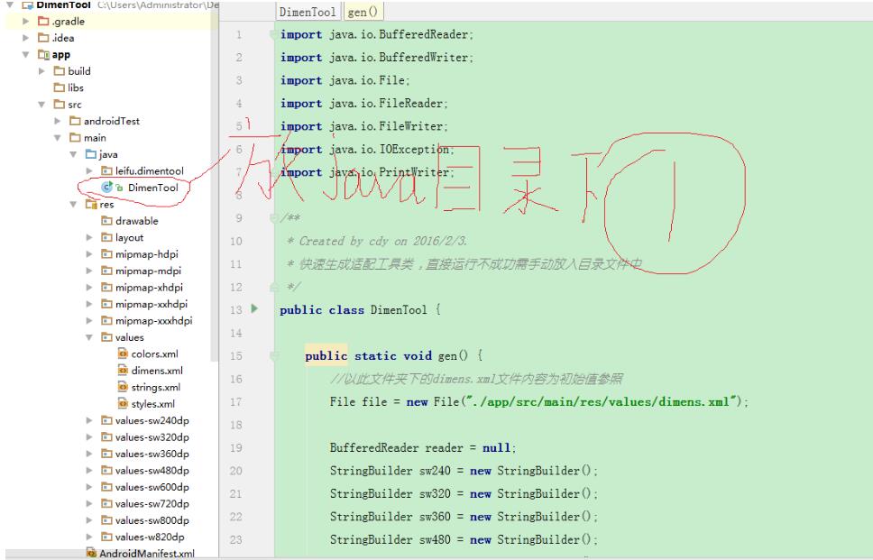 1.在工程的java文件夹下把项目的DimenTool.java复制到该文件夹下。