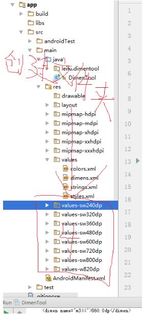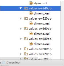 3.创建文件夹(values-sw240dp,values-sw320dp values-sw360dp…根据dimentool代码创建对应的文件夹)