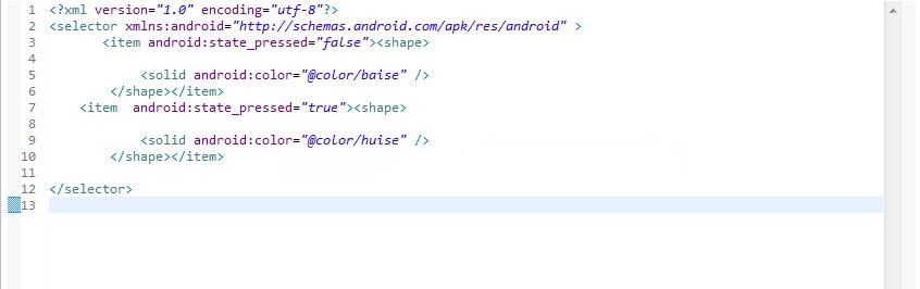 在color文件中定义颜色 然后写XML文件调用 图中base,huise为定义的两种颜色 改变颜色在控件的color属性下调用此XML文件