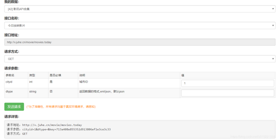 数据是使用的聚合数据的API,影讯API合集,大家可以注册个账号,申请使用一下,像这样