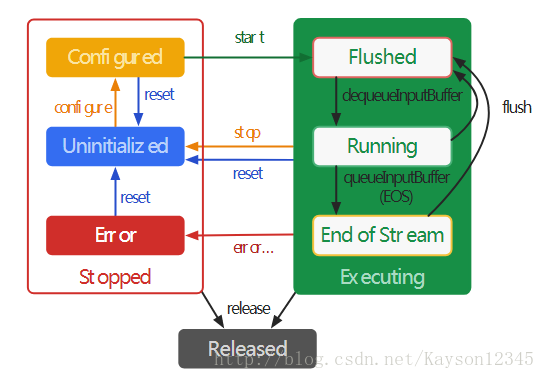 这里说到MediaCodec的状态,大家可以看来自开发者文档的MediaCodec的状态机图片。