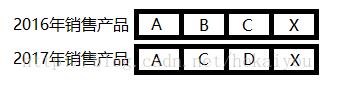 动画效果可以做得非常好看,但仍然会让用户感到困惑。为什么?因为它不保留语义。它将表示产品类别B的图形元素转换为代表类别C的一个图形元素,而将C的图形元素转换到其他地方。正因为2016 B恰好是在2017 C后来出现的同一位置,并不意味着前者应该变成后者。相反,2016年B应该消失,2016年C应该向左移动到2017年,而2017年D应该出现在右边。我们可以使用传统的合并排序列表实现这种混合。