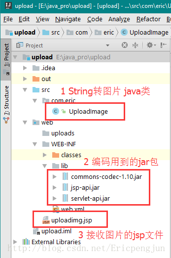 服务端项目结构:UploadImage.javauploadimg.jsp`、lib库