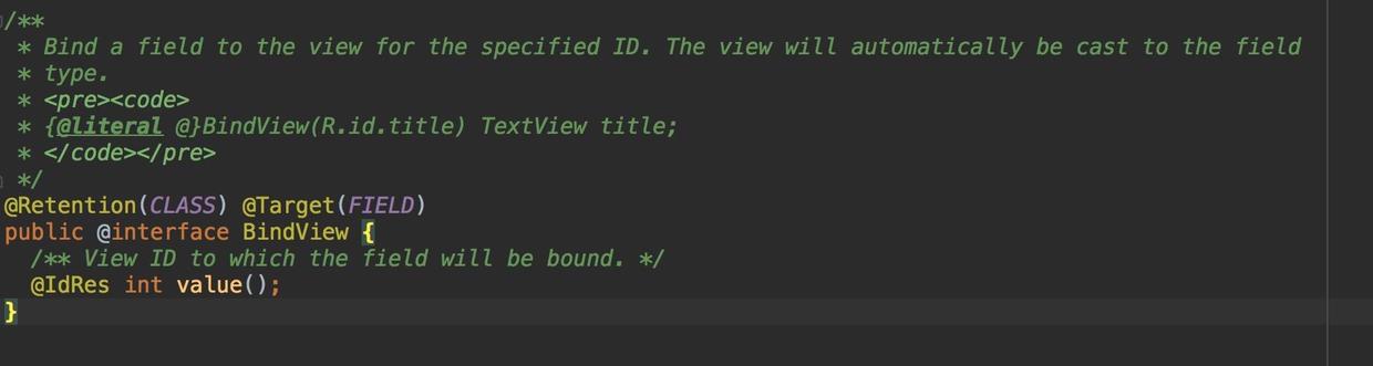 @Target({ElementType.FIELD})@Retention(RetentionPolicy.RUNTIME)public @interface getViewTo { int value() default -1;