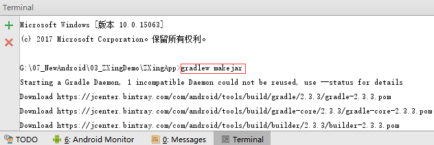 方式 C :在 Android Studio 终端窗口中输入 gradlew makeJar 命令。