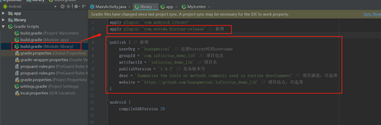 `apply plugin: ``'com.novoda.bintray-release'` `// 新增`