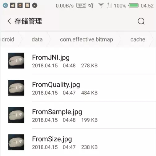 原图大小5.99M~~ 我们把所有经过压缩的图片放到同等大小的情况后,很明显,采样压缩跟尺寸压缩都不是我们想要的结果,而质量压缩跟JNI压缩我设置的质量压缩值都是30,JNI压缩出来只有278KB,直接质量压缩出来的有484KB,综合之后,JNI才是综合最优的方式,当然,如果只是头像,我们设置可以把配置值设置得更小,图片就更小。
