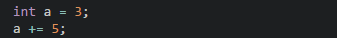分析:定义整型变量a并赋值为3,a += 5;这个算式就等价于a = a+5; 将变量a和5相加之后再赋值给a