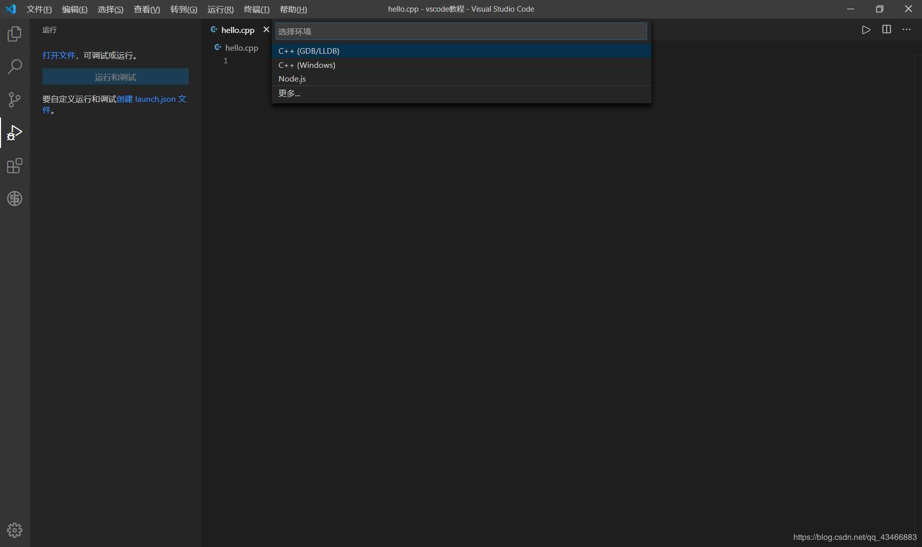 选择编译按钮->自定义运行和调试创建launch.json文件->选择环境C++(GDB//LLDB)