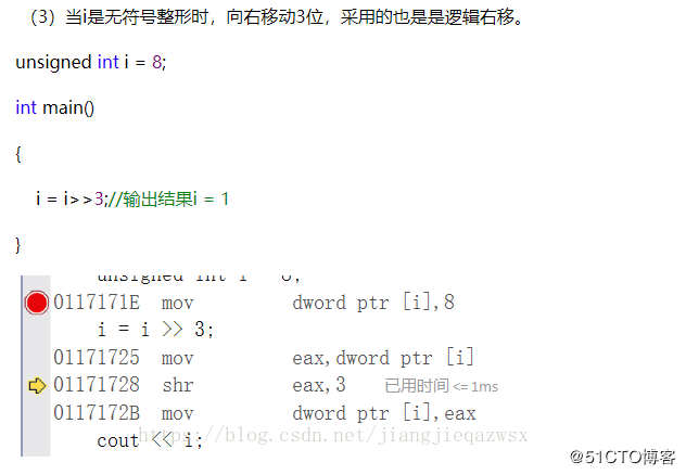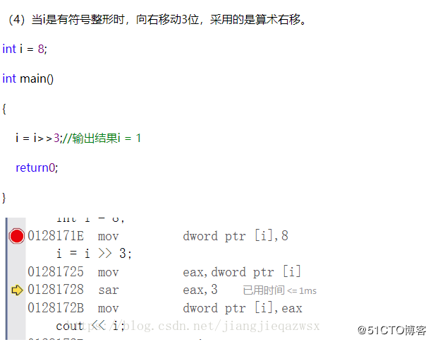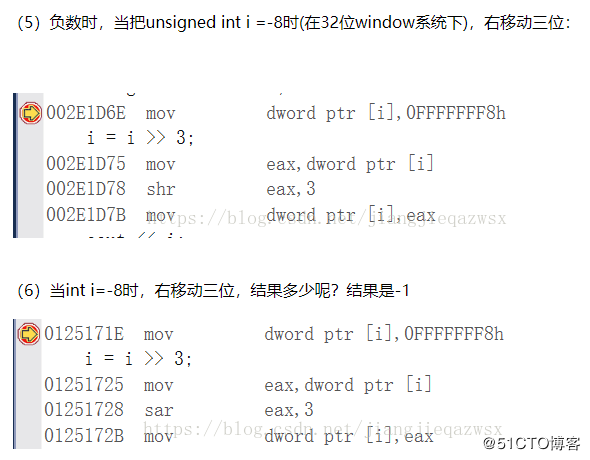 结论:说明只要是有符号数,不管值是正还是负,右移时采用的都是算术右移。
