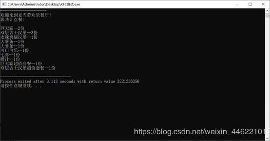 以上就是无聊小猫咪最近收集整理的关于C++实现KFC点餐系统的全部内容,更多相关C++实现KFC点餐系统内容请搜索靠谱客的其他文章。