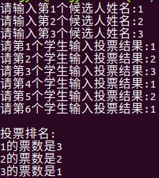 之后,用冒泡排序。最后输出排完序票数。