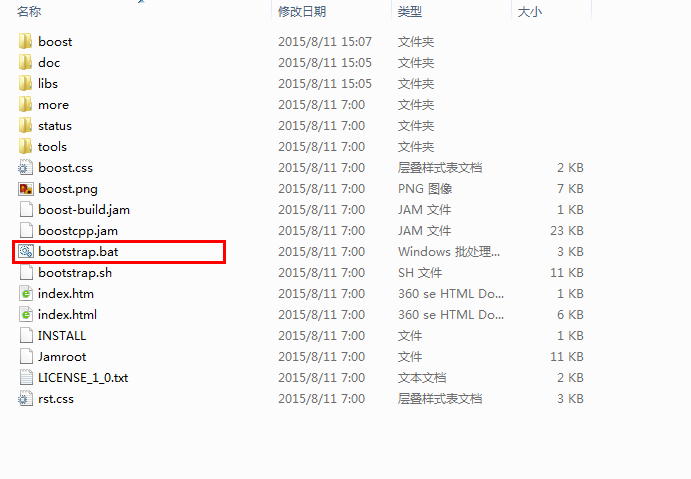 执行会发现当前文件夹中增加了几个文件,找到其中的bjam.exe,如下图所示