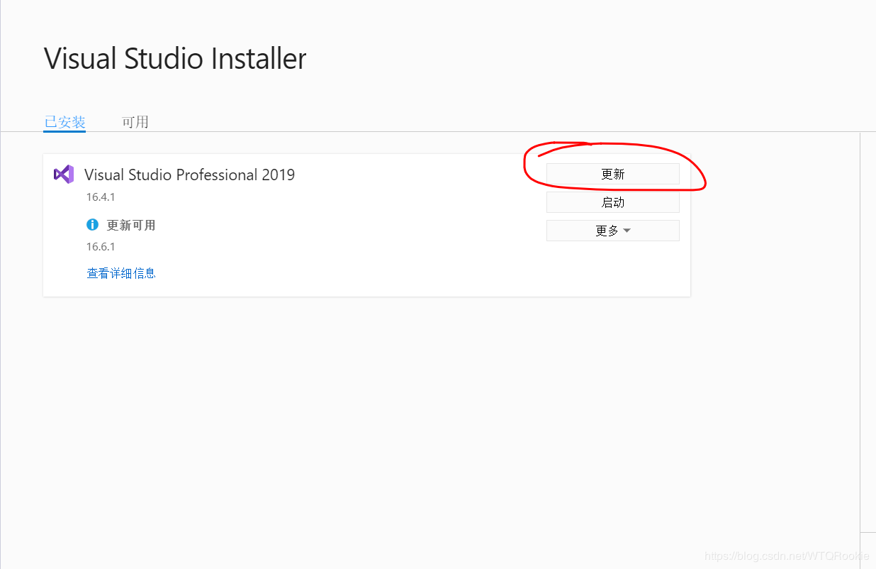一定要确保如果你使用更新一定要保证新的vs版本下载并安装完毕,如图,当然如果不是最新版本也可以,只要保证不是正在下载就行。