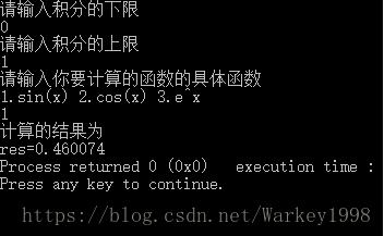 以上就是落后眼睛最近收集整理的关于C语言使用矩形法求定积分的通用函数的全部内容,更多相关C语言使用矩形法求定积分内容请搜索靠谱客的其他文章。
