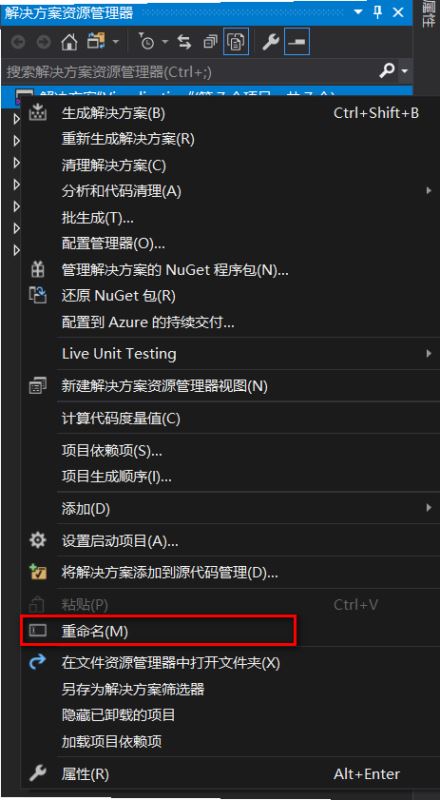 【解决方案】右键选择【重命名】,将OldSlnName重命名为NewSlnName