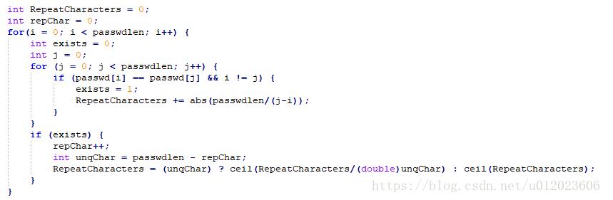 RepeatCharacters += abs(passwdlen/(j-i));