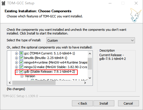 若上述网址失效,进入http://tdm-gcc.tdragon.net/download,选第二个。 建议直接装在C盘,可以减少后面修改路径的麻烦。 安装的时候,需要手动勾选如下图所示的选项(gdb),否则下面5中launch.json "