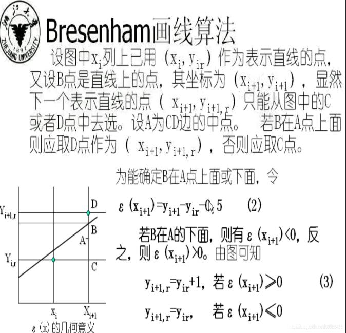 其原理是:过各行、各列像素中心构造一组虚拟网格线,按直线从起点到终点的顺序计算直线各垂直网格线的交点,然后确定该列像素中与此交点最近的像素。