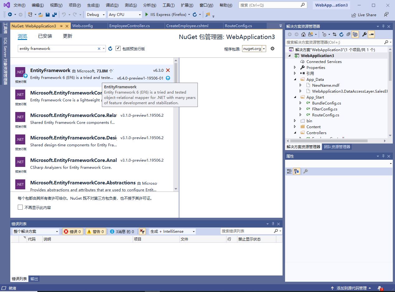 Get-Package --默认列出本地已经安装了的包 可以加参数 -remote -filter entityframework 来在包源中查找自己想要的包