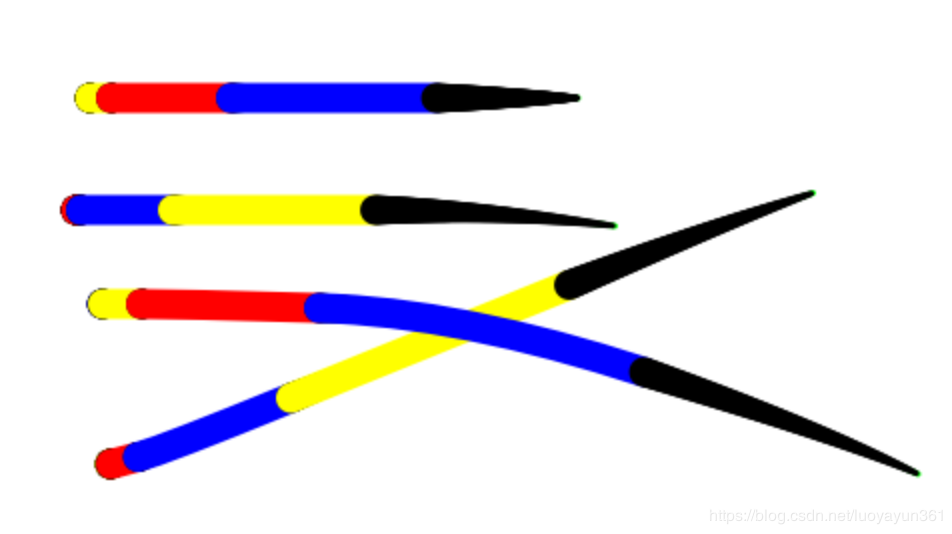 什么是补点,就是说我们需要在连接处 根据最新path的线条路径来绘制一系列的点进行填充,使其连接处看起来平滑,图示如下: