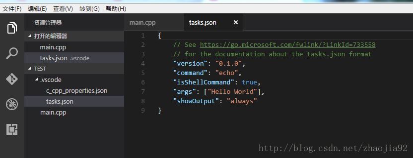 修改command是cmd命令,args是命令的附加参数。其他无需改动。电脑中已经配置gcc后,修改文件内容为: