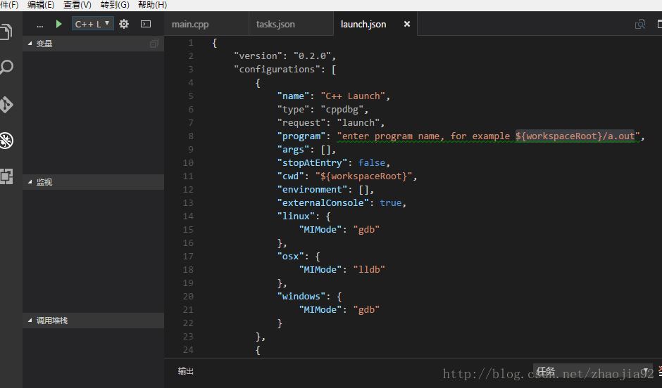 保存Ctrl + s。关闭Launch.json文件。此时便可以设置断点,F5调试程序了。