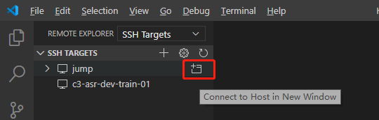保存后,ssh targets里面就会出现机器A,点击connect to host in new window之后,就可以直接在新窗口中访问机器C。